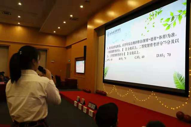 本次竞赛自筹备以来,得到17、18级各班同学的积极响应,辅导员老师们参与动员并指导,各班级选拔出强有力选手组成各具特色的参赛队。在前期投票活动中,17影技本科一班的“老师说的都队”与18影技高职班“小小鸟飞高高队”在14支队伍中以最佳人气成功晋级决赛。29日当晚的比赛现场,其余的12支队伍首先角逐进入总决赛的3个名额,之后5支队伍进入到决赛环节,通过单选题、多选题、判断题等多种形式的考验,内容涉及“课堂考勤制度”、“请假制度”、“违纪处罚条例”、“督导团工作制度”、以及“宿舍安全管理规定”等各个方面,最终凭借充分的学习和准备、团队的默契合作,18影技本科四班“开开心心队”获得冠军,18影技本科一班“真假难辨队”获得亚军,17放疗班“肥肥不哭mua队”和17影技本科一班“老师说的都队”获得季军。