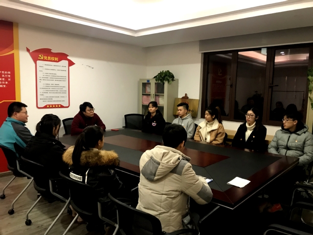 当晚,参与宣誓活动的有员工党支部的正式党员鲁绍蓉、李群,预备党员周佳骏、蒋一飞、王寅喆、李芳燕、季东雷、苗舒婷以及发展对象常正伟等9位同学。宣誓仪式在庄严的国际歌中拉开序幕,孙佳鸣代表员工党支部进行致辞,并宣读2018年第四季度发展和转正的党员名单。随后,由孙佳鸣领誓,在场全体面向宣誓墙进行庄严宣誓。宣誓后,5位新党员逐一发言,并进行表态,他们表示一定会用自己的实际行动践行许下的承诺,不忘初心,牢记使命,在今后的工作、学习、生活中展现先锋模范作用,永远跟党走。鲁绍蓉作为员工党员代表向新党员送上祝福和期望,希望他们在未来的日子里牢记自己的党员身份,展现党员的模范性。常正伟作为发展对象代表进行发言,表示将向党员同志们学习,提升自己的思想觉悟和理论素养,期盼能够早日加入党组织。最后,谭松珊对在场的全体提出几点希望,1、珍惜组织对自己的信任,要以百倍的努力践行自己的誓言;2、提高政治站位,在平时亮身份,积极发挥作用;3、牢记自己的党员身份,有所为有所不为,牢记组织的教诲。