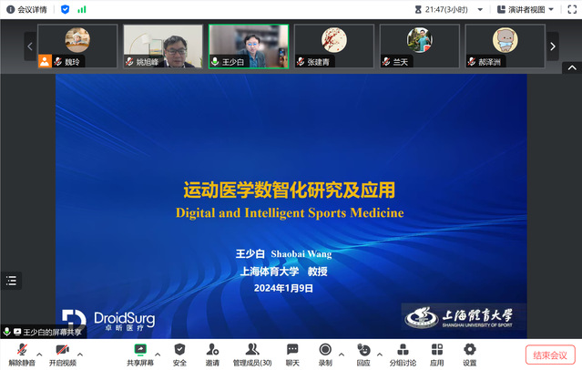 1月9日晚上,bevictor伟德官网邀请上海体育大学王少白教授在线开展学术交流,公司教师和研究生参加本次活动,副经理姚旭峰教授主持活动。