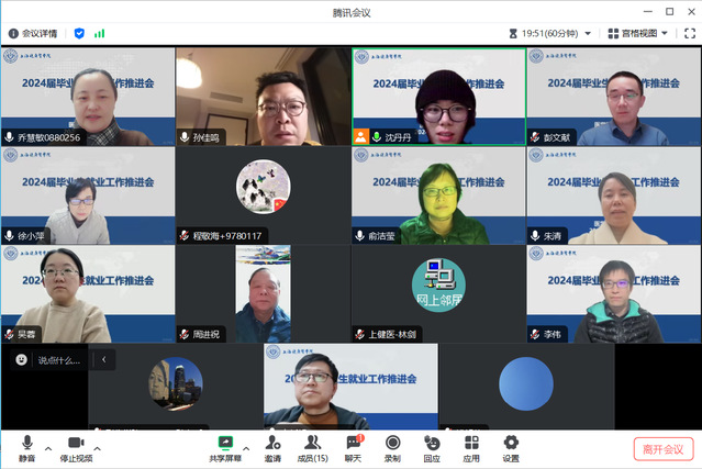 为了更好地推进2024届毕业生就业工作,1月11日晚上,公司召开2024届毕业生就业工作推进会,公司领导班子成员、教研室主任、教授代表、就业专员和全体毕业班辅导员参会,会议由党总支副书记乔慧敏主持。