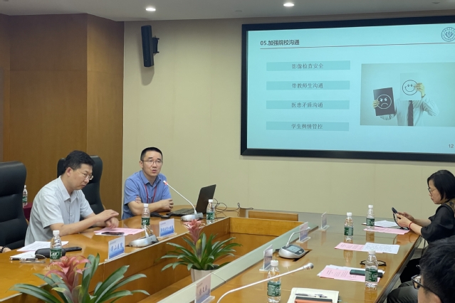 会上,彭文献介绍了2025届毕业生的实习计划和要求,提出临床实习中进一步加强员工职业素养教育,密切医院公司之间的沟通,出现问题能够及时协商解决。黄辰详细介绍实习教学中小讲课和出科考核的要求,并对标本科教学合格评估各项要求,与医院实习负责人交流了实践教学基地需要进一步完善的地方。乔慧敏介绍了2024届医学影像技术专业毕业生的就业进展及2025届毕业生基本情况,对医院给予专业人才培养的大力支持表示感谢,同时也交流了员工就业过程中遇到的难题,也希望各医院能够在员工就业中多提供机会,多给予帮助。
