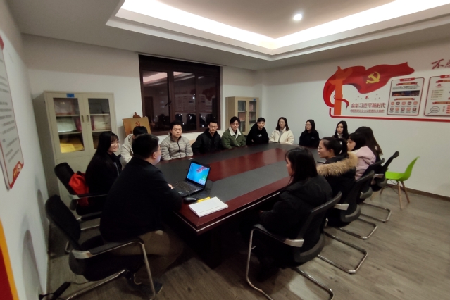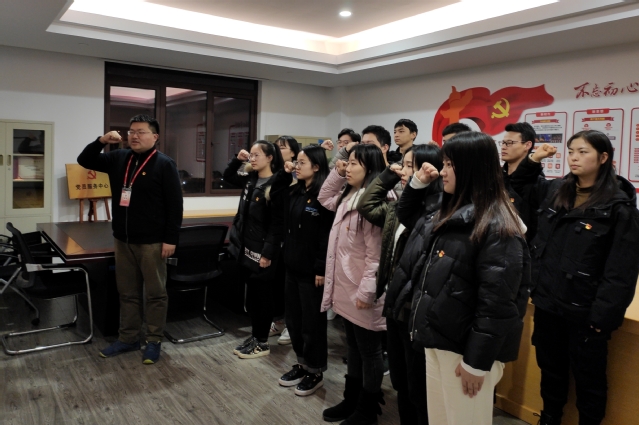 当晚,参加宣誓仪式的有员工党支部正式党员鲁绍蓉、周佳骏,预备党员张心悦、蔡如鑫、陆祉恒、吴晓婷、张一帆、余梦瑶、金依雯、唐自逸、常天娇、张忠奥、李佳男、杨泽铖等14位党员同志。宣誓仪式在庄严的国歌声中拉开帷幕,谭松珊代表党组织进行致辞,并宣读2019年第四季度入党的新党员名单。随后,由谭松珊领誓,与会全体党员同志进行庄严宣誓。宣誓结束后,10位新党员逐一发言,并进行表态,他们表示一定会用自己的实际行动践行许下的承诺,不忘初心,牢记使命,在今后的工作、学习、生活中展现先锋模范作用,永远跟党走。鲁绍蓉和张心悦两位同志作为员工党员代表向新党员送上祝福和期望,希望他们在未来的日子里牢记自己的党员身份,展现党员先进性。