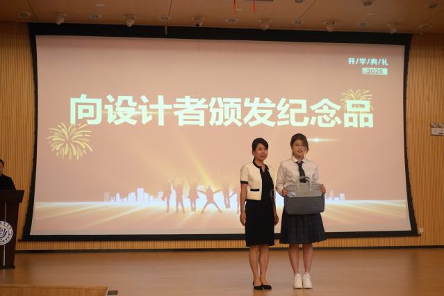 典礼伊始,师生共同唱响中华人民共和国国歌。随后,智能影像工程教研室专任教师陈珊珊、95级医用放射线设备专业毕业员工、现任上海西门子医疗器械有限公司亚太区教育服务中心教育培训经理白冈,先后寄语新生,鼓励大家应该努力把握来之不易的学习机会,勇敢追求自己的梦想,未来在大影像界做出各自的贡献。公司院训、院徽发布仪式将开学典礼推向高潮。公司党总支书记朱清宣读并展示院训院徽,向设计者颁发纪念品。朱清强调,院训、院徽体现并象征了“理性专业+温暖仁心”的公司气质和影像人精神内核,希望大家以院训院徽传递的精神为指引追求卓越、勇攀高峰。2023 级九院联合培养班崔朱玮同学作为院训院徽的设计者向新生介绍了她的设计理念和创作过程,饱含对公司和公司的深厚感情。2025 级智能影像工程2班叶文渊作为新生代表发言,自信昂扬、意气风发,她讲到:“我们将以‘察微见著’的态度钻研影像技术,以‘影鉴仁心’的信念守护生命健康,承担起新时代影像人的责任与使命,做一名优秀的基层卫生健康的守护者。”