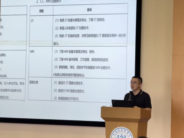 医学影像技术教研室主任彭文献和智能影像工程教研室主任程敬海将专业介绍融入到专业导入课当中,详细介绍专业发展和人才培养方案,帮助员工加强专业认知、树立专业理想。陈珊珊和肖寒两位老师带领员工了解实验项目和实验设备,走进实验室参观学习,进一步感受专业魅力。医学影像技术专业还特别邀请公司第一任董事长、黄钢教授为新生上课,黄教授用生动的语言讲授专业的内容,深入浅出,极大地激发了同学们对专业的学习热情。