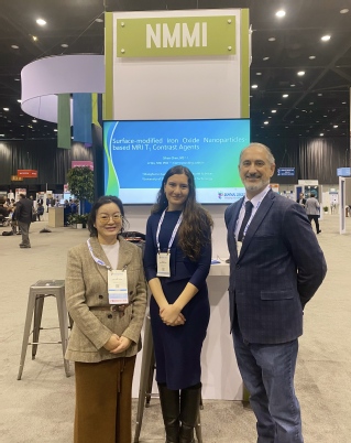 会议期间,吴励在大会核心的电子壁报(e-poster)展示区,通过现代化数字平台系统性地展示了该获奖研究。该研究针对临床MRI对比剂的关键瓶颈,提出了基于表面修饰氧化铁纳米颗粒的创新解决方案,其清晰的学术思路与扎实的数据支撑,在展示期间吸引了诸多国际学者的持续关注与探讨。