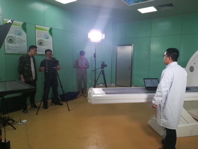 5月9日,微课摄制工作正式开始,首先集中拍摄理论部分内容,结束后分别至CT实训室、MRI实训室、高频发生器实训室、超声实训室等进行实践部分拍摄。整个过程从早上7点45分一直持续到晚上9点40分,顺利完成了13个微课作品的拍摄工作。