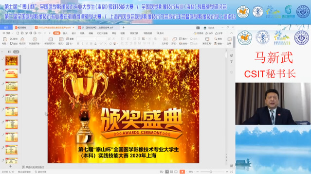 受疫情影响,本次公司产品研讨会和大赛闭幕式在线上举行,全程进行网络转播。公司产品研讨会由bevictor伟德官网经理徐小萍主持,中华医学会影像技术分会主任委员付海鸿作题为《学科引领,专业拓展——医学影像技术学科与专业建设的思考与探索》的专题报告,中华医学会影像技术分会教育专委会主任委员王鹏程作题为《新冠疫情下的医学教育——线上医学教学情况分享》的专题报告,中国医师协会医学技师专委会副主任委员张雪君作题为《后疫情时代医学影像学教学平台建设的思考》的专题报告,长江大学医学部教授任柏绪作题为《医学影像技术本科生专业思想状况调查分析与干预对策》的专题报告,江苏省医学会影像技术分会主任委员周学军作题为《医学影像技术专业教师的培养》的专题报告,中华医学会影像技术分会常务委员李萌作题为《高等卫生职业院校开设健康教育类课程的调研与分析》的专题报告。6位专家结合当前形势,围绕后疫情时代医学影像技术人才培养,展开探讨,可谓发人深省,展现出极高的学术素养和现实意义。王鹏程主任委员作公司产品研讨会总结。