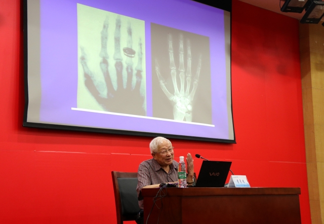 讲座伊始,何培忠经理向在场听众介绍了年高德劭的曹厚德教授,代表公司热烈欢迎曹老莅临公司,并对已年逾古稀但依然活跃在学术研究第一线的曹老表示由衷敬佩。随后,曹教授作了题为《现代影像技术学的传承和发展》学术报告,他以风趣幽默的言语开场,曹老自称为“80后”,今天来校与在座的“90后”们进行交流。在学术报告中,曹老带领大家回顾了影像技术学的发展历程,历数多位曾为专业发展做出卓越成就的伟大科学家,尤其是几位诺贝尔奖获得者,为影像技术学的传承与创新做出了永载史册的贡献。他对比了1940年传统X线摄影和2015年数字X线摄影的区别,指出现代科学技术的进步,给予影像技术学全新的发展,在科技高速发展的今天,专业技术可谓日新月异,需要不断地学习才能跟上时代的脚步。他勉励在座的同学们努力学习,在今后为学科的发展做出自己的贡献。最后,曹老师表示,希望大家能够“选择我所热爱的,热爱我所选择的”,利用在校时光夯实专业基础,今后在临床一线,必然大有作为。还提出“祈福必须避祸”面对当下日趋紧张的医患关系,要懂得保护自己,坚持自己学医的初心不变。