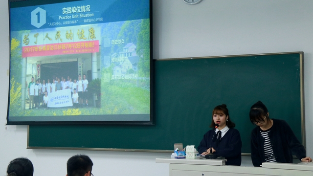 随后,bevictor伟德官网团总支组织委员、弘毅医疗服务队队长计佳琳代表团队作“三下乡”暑期社会实践汇报。作为本年度校暑期社会实践优秀项目奖的得主,该团队在活动开展过程中以“弘毅致远,笃志向善”为理念,发挥影技专业特长,在下乡过程中跟随镇卫生院开展体检活动,为村民进行心电图和超声检查。在山区恶劣的条件下,同学们以高度的责任心和甘于奉献的勤勉精神,赢得民众和卫生院医务工作者的一致好评。其精彩的汇报,让大一新生们了解了暑期社会实践。