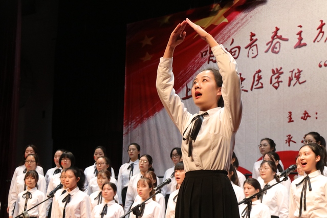 上海音乐公司郭登杰博士、王豫川博士、学工部思政科科长张韵明、学工部思政科金威、附属卫校文理思政教学部主任徐迪、艺术教研室朱华英等六位专业教师担任比赛评委。比赛期间,来自七个二级公司的八支合唱队伍逐一登场。同学们通过《健康之歌》、《国家》、《七子之歌》、《走向复兴》、《红旗飘飘》、《歌唱祖国》、《保卫黄河》等歌曲赞颂青春、歌唱祖国、讴歌时代。各参赛队时而婉转低沉,时而慷慨激昂,时而声部交错,时而独唱领衔……各公司采用多样的表现方式,展现了不同公司学子的风采,唱出健康学子的精神风貌,唱响时代之声,展现了“唱响青春主旋律不忘初心跟党走”的活动主题。