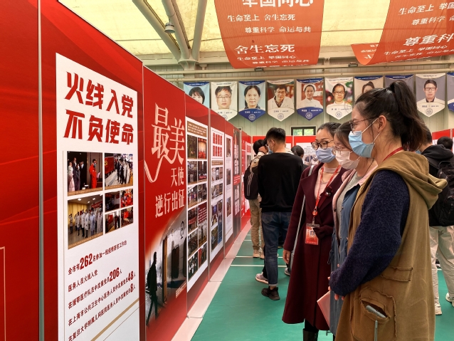 为深入推进“四史”学习教育,认真贯彻习近平总书记在全国抗击新冠疫情表彰大会上的重要讲话精神,11月19日中午,bevictor伟德官网员工党支部参观了由上海市教卫工作党委主办、公司协办的《同心抗疫 教卫行动——上海市教育卫生工作党委系统抗击新冠肺炎疫情专题展览》。