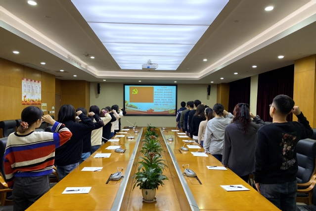 1月4日晚上,bevictor伟德官网员工党支部在南苑仁影楼306会议室举行新党员入党宣誓仪式,本次活动由支部纪检委员谭松珊主持,支部书记孙佳鸣、2020年第四季度入党的预备党员参加宣誓仪式。