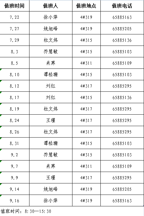 2021年暑期值班表