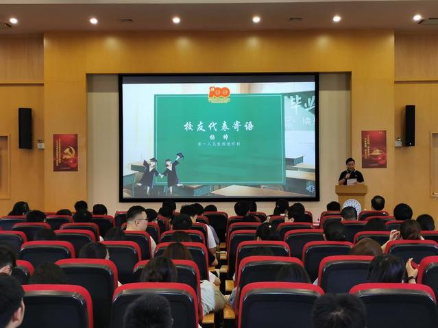 欢送仪式在雄壮的国歌声中拉开帷幕,暖场短片将大家的记忆带回到入学之初,从初识到相知、然后并肩奋斗、努力拼搏,蓦然回首,老员工活已悄然而逝!大家的心情有些伤感。欢送会上,老师、学长的叮咛为即将起航的全体21届毕业生加油和助力,谆谆教诲如春风化雨,滋润心田。欢送仪式简单朴素,又不失隆重热烈,充满温情与不舍,更充满希望与斗志。
