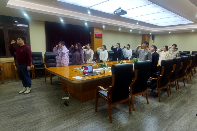 1月12日晚,bevictor伟德官网员工党支部在南苑仁影楼306会议室举行新党员入党宣誓仪式,本次活动由支部纪检委员谭松珊主持,支部书记孙佳鸣、2021年第四季度入党的预备党员参加宣誓仪式。