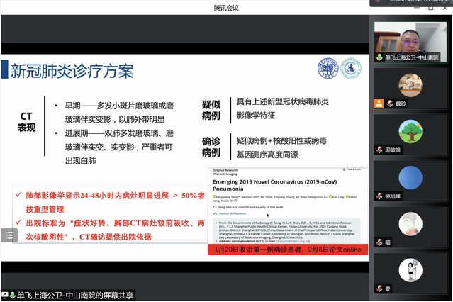 3月17日晚7点,上海市公共临床卫生中心放射科单飞主任受邀莅临影像公司进行线上学术交流,公司教师与研究生30余人参加了此次讲座。会议由影像公司科研经理姚旭峰教授主持。