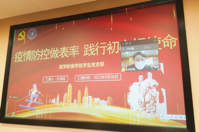 本次活动的主题为“疫情防控做表率、践行初心担使命”。为保证主题党日的顺利开展,党支部统一思想认识,强化纪律要求,提前下发学习材料,通知党员做好线下自学。3月26日晚,党支部采取线上线下相结合的方式,在南苑仁影楼306会议室和腾讯会议平台召开会议。