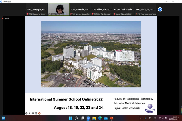 本次夏令营中,邀请了日本藤田医科大学放射线专业教师开展多场学术讲座,包括AI的背景与基础及其在医学中的应用、放射治疗的基本原理、放射技术临床应用、核医学技术、乳腺癌治疗技术等内容;另外,还特别邀请到了来自日本九州大学的教授为营员们开展虚拟现实技术在医疗放射领域的应用讲座。期间,进行了小组活动讨论、作业提交、答疑、发表会、点评等多项活动,并进行了校园以及附属医院放射科线上参观。